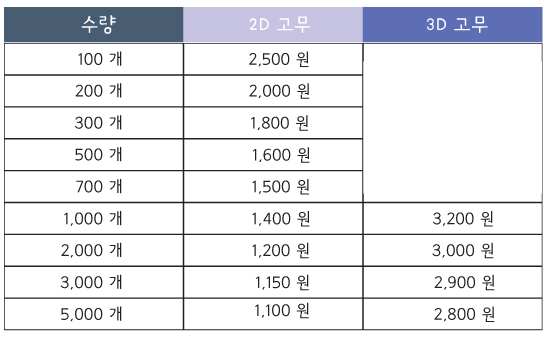 위 금액은 금형비별도금액입니다. 수량과 도안에 따라 금형비는 틀려집니다.